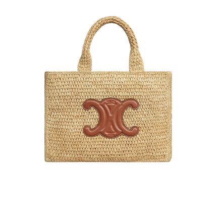 Celine Supple Small Triomphe Classic Panier In Raffia Tan 25Cm