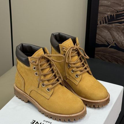 CELINE KURT LACE-UP MID BOOT IN NUBUCK CALFSKIN AND SHEARLING