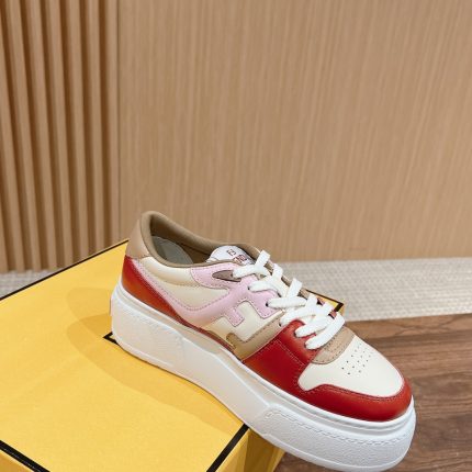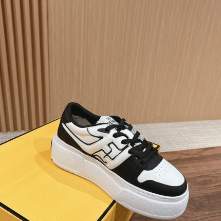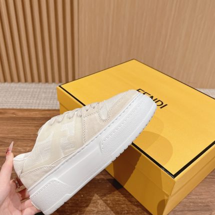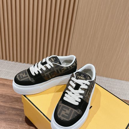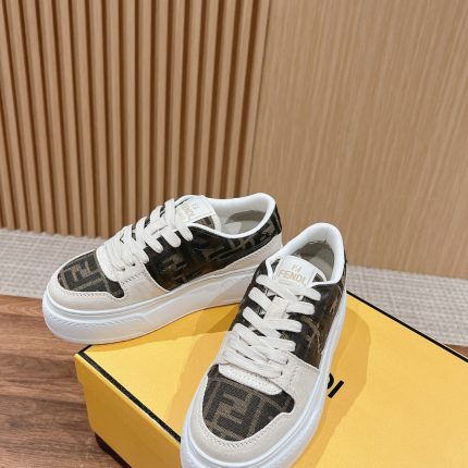 FENDI Match Canvas and suede platform low-tops Sneakers