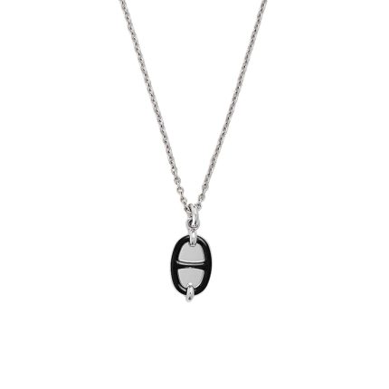 Hermes Mini Maillon Pendant Small Model Necklace Silver Tone With Black H100053fp03