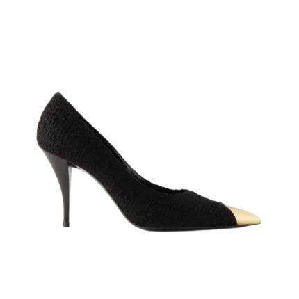 Saint Laurent Vesper Leather Trimmed Bouclé Pumps Black