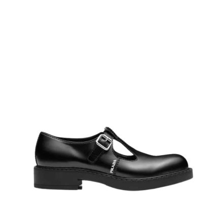 Prada Brushed Leather Mary Jane T Strap Shoes Black 2Ee372 055 F0002