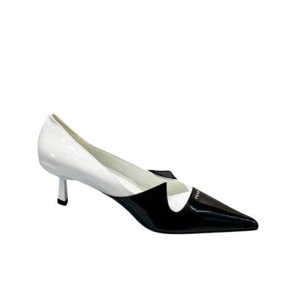 Prada Two Tone Toe Kitten Heels In Black And Beige