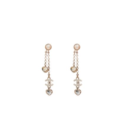 Chanel Heart Shaped Earrings Crystal In Gold Abg245 B21749 U3282
