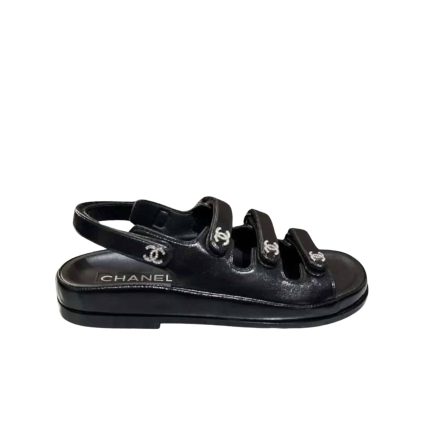 Chanel Triple Velcro Strap Sandals Black G45628 B16403 94305