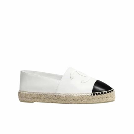 $349.00Chanel Embroidered Espadrille Leather Black Cap Toe Flats White CC