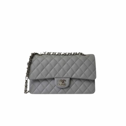 Chanel Medium Classic Flap Bag Silver Hardware Grey 25Cm