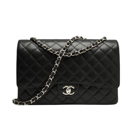 Chanel Maxi Classic Handbag Sliver Hardware Black 33Cm
