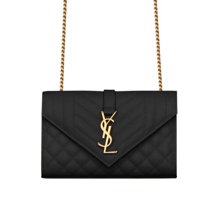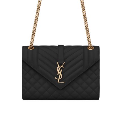 Saint Laurent Envelope Medium In Quilted Grain De Poudre Embossed Leather Black Gold 24Cm 600185Bow911000