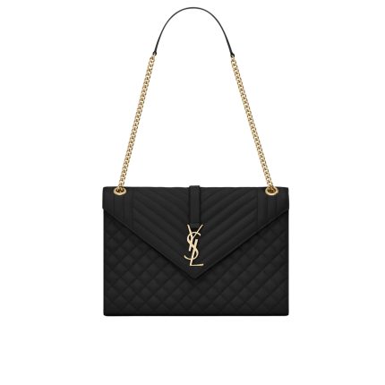 Saint Laurent Envelope Large Bag In Mix Matelassé Grain De Poudre Embossed Leather Black 31Cm 600166Bow981000
