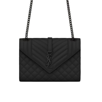 Saint Laurent Envelope Medium In Quilted Grain De Poudre Embossed Leather Black Noir 24cm 600185BOW981000