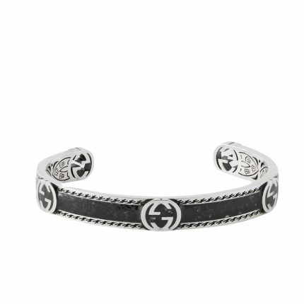 Gucci Cuff Bracelet Interlocking Gg Sterling Silver Black Enamel