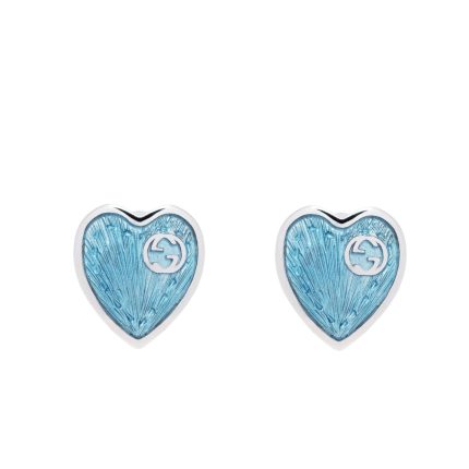 Gucci Heart Earrings With Interlocking G Light Blue Enamel Silver 645547 J8410 8183