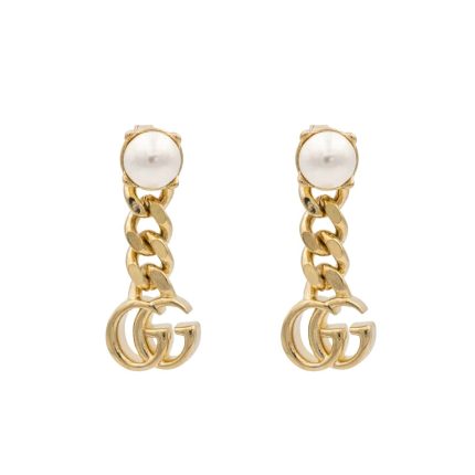 Gucci Pearl Double G Earrings Gold 645665 I4620 8078