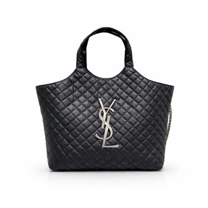 Saint Laurent Icare Shopping Bag In Quilted Silver Hardware Black 40Cm