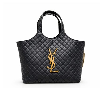 Saint Laurent Icare Shopping Bag In Quilted Gold Hardware Black 40Cm