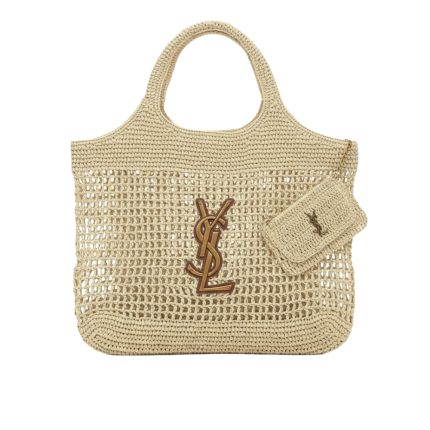 Saint Laurent Raffia Icare Tote Bag Naturel And Brown Gold 45Cm 772191Gaaek2063