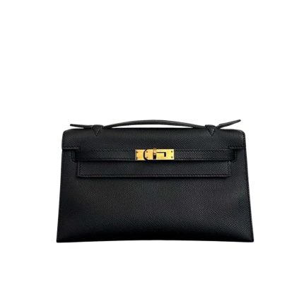 Hermes Mini Kelly Pochette Gold Toned Hardware Black 22Cm