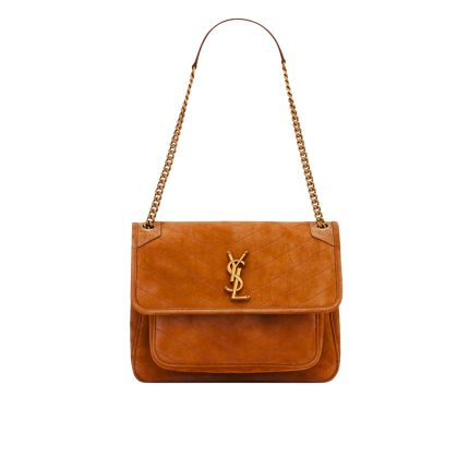 Saint Laurent Niki Baby Quilted Suede Chain Bag Brown 28cm