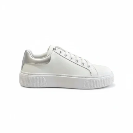 Prada Sneaker In White Leather With Silver Logo