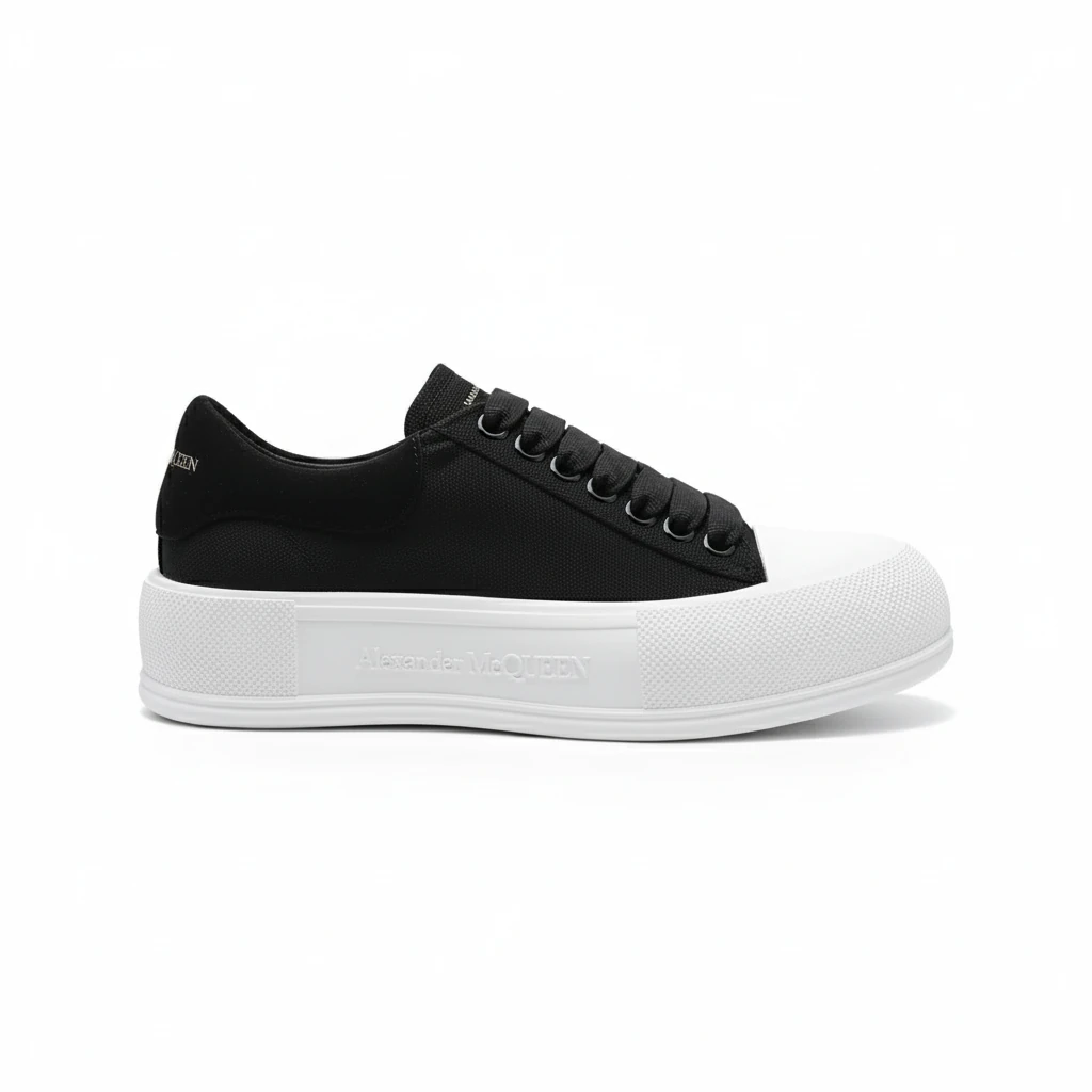 Alexander McQueen Black & White Deck Plimsoll Sneaker