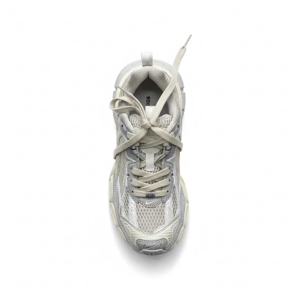 Chanel 23C Silver Metallic Cc Logo Lace Up Flat Runner Trainer Sneaker White G39792 Y56368 K5451