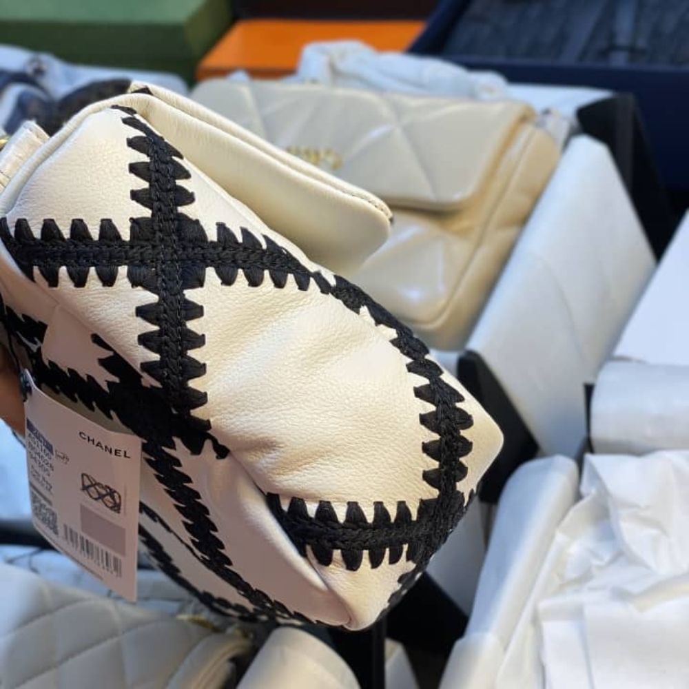 Chanel 19 Flap Bag Crochet Gold And Silver Tone White Black 24Cm AS1160 B04824 C0200