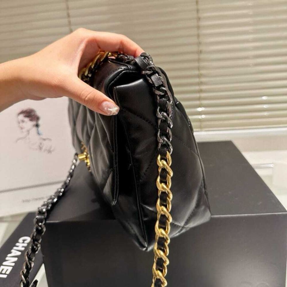 Chanel 19 Flap Bag Shiny Gold And Silver Tone Black 30Cm