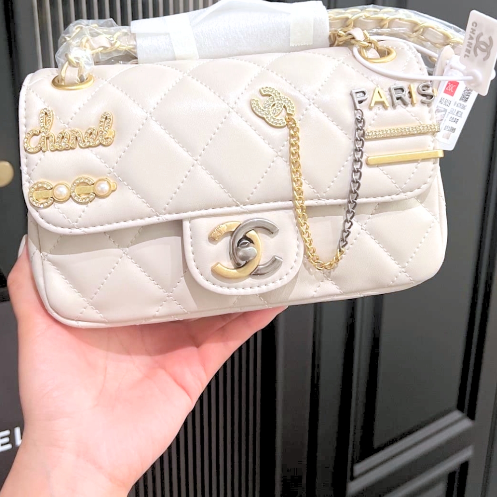 Chanel 22C Quilted Lucky Charm White 20Cm