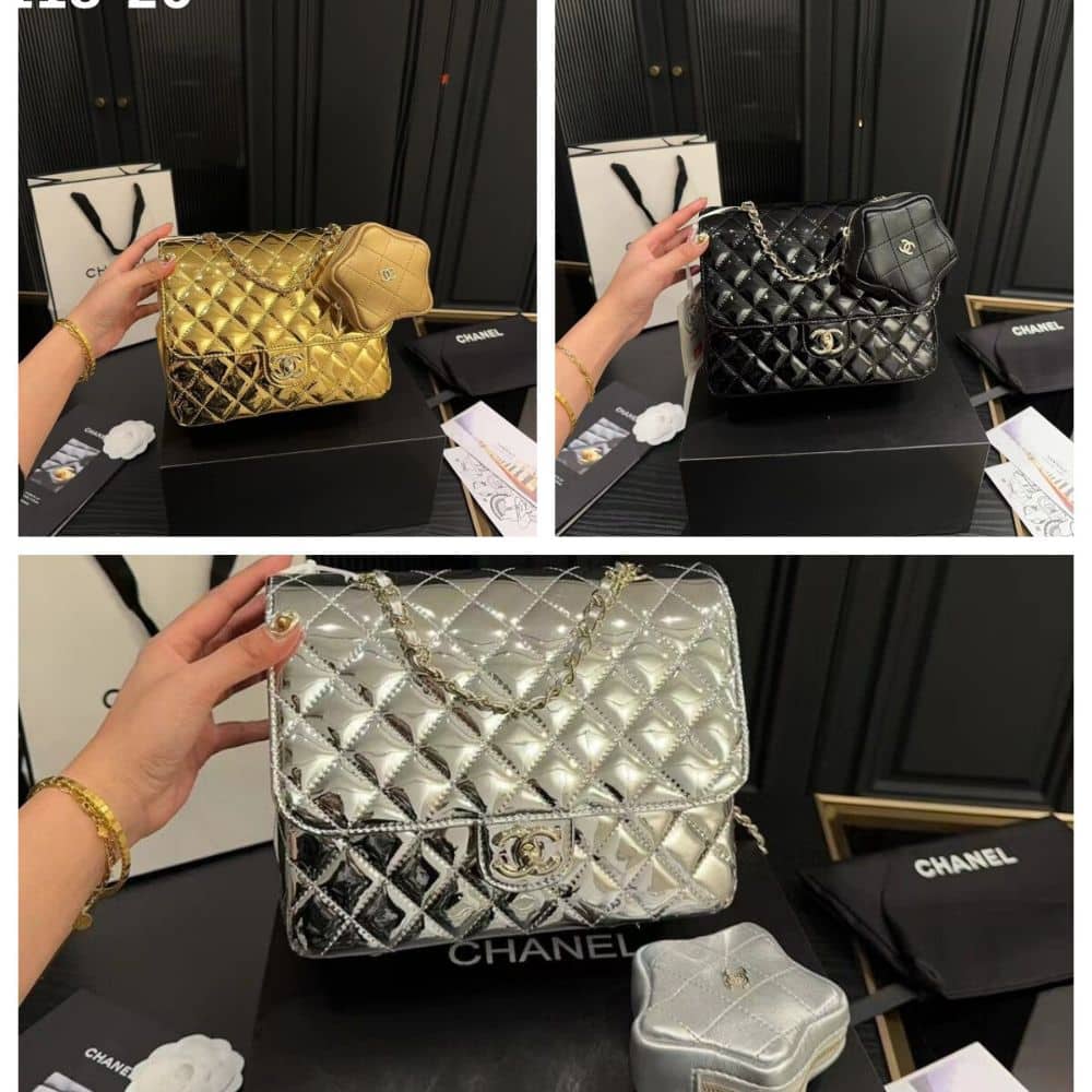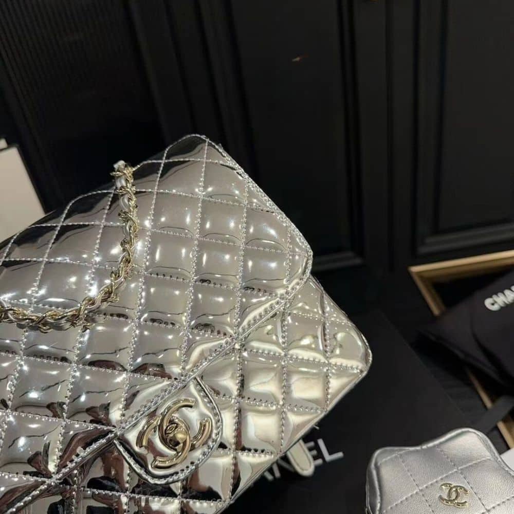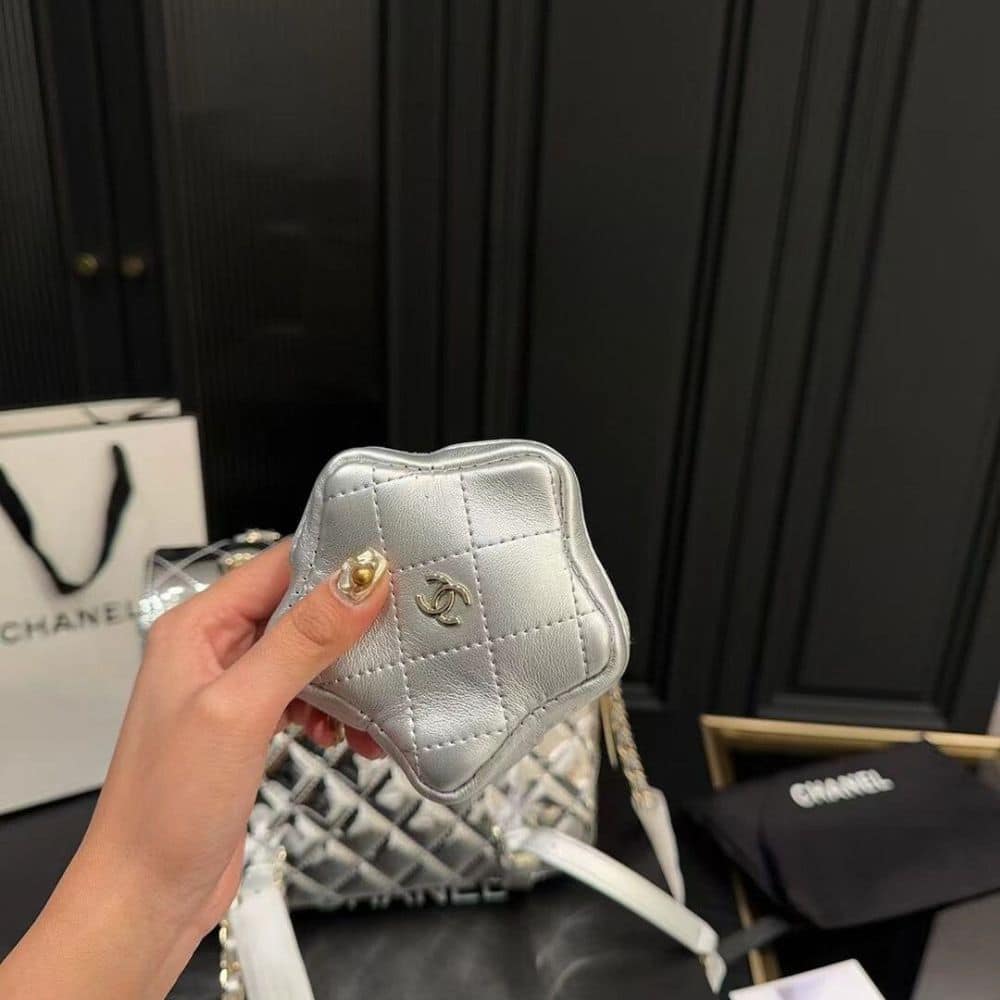 Chanel 24C Mirror Star Coin Purse Mini Flap Bag Metallic Silver 23Cm
