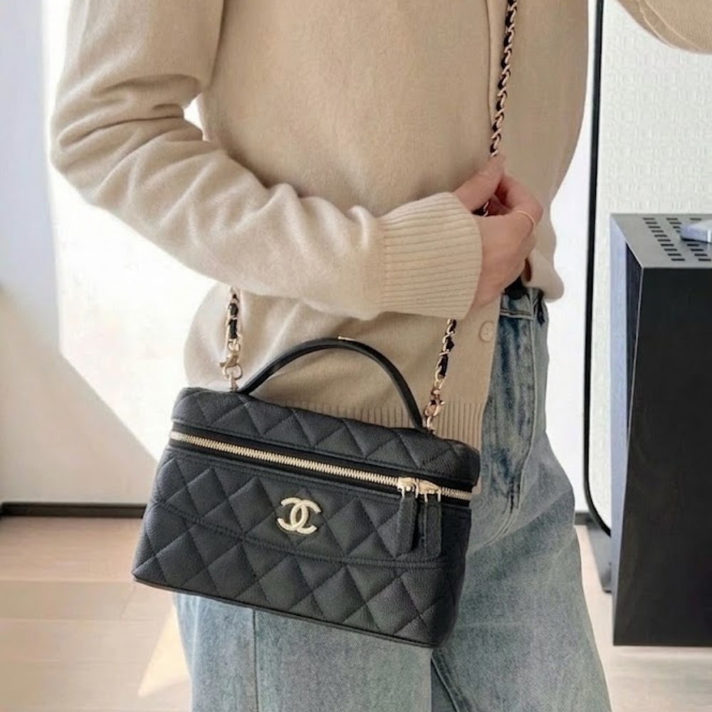 Replica 1:1 – Chanel 25C Vanity With Chain Gold Hardware Black 19Cm