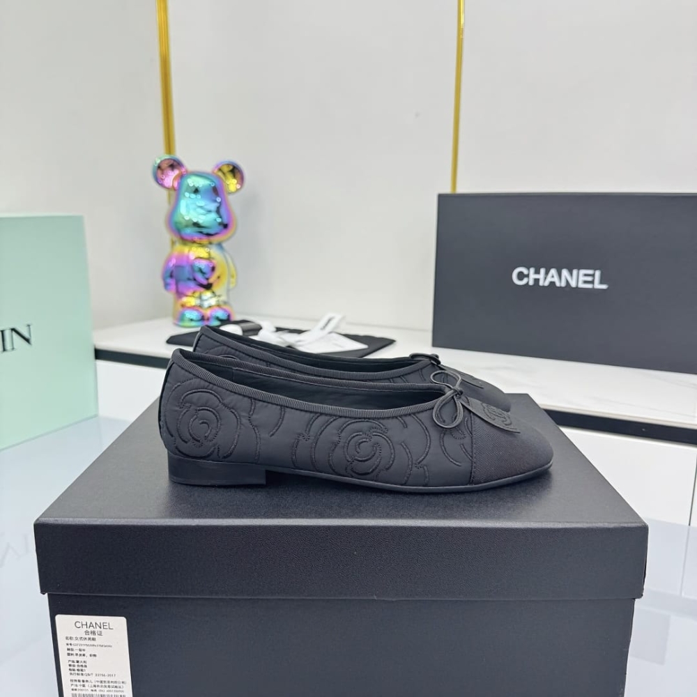 Chanel Ballet Flats Embroidered Fabric And Grosgrain Black G02819 B21026 94305