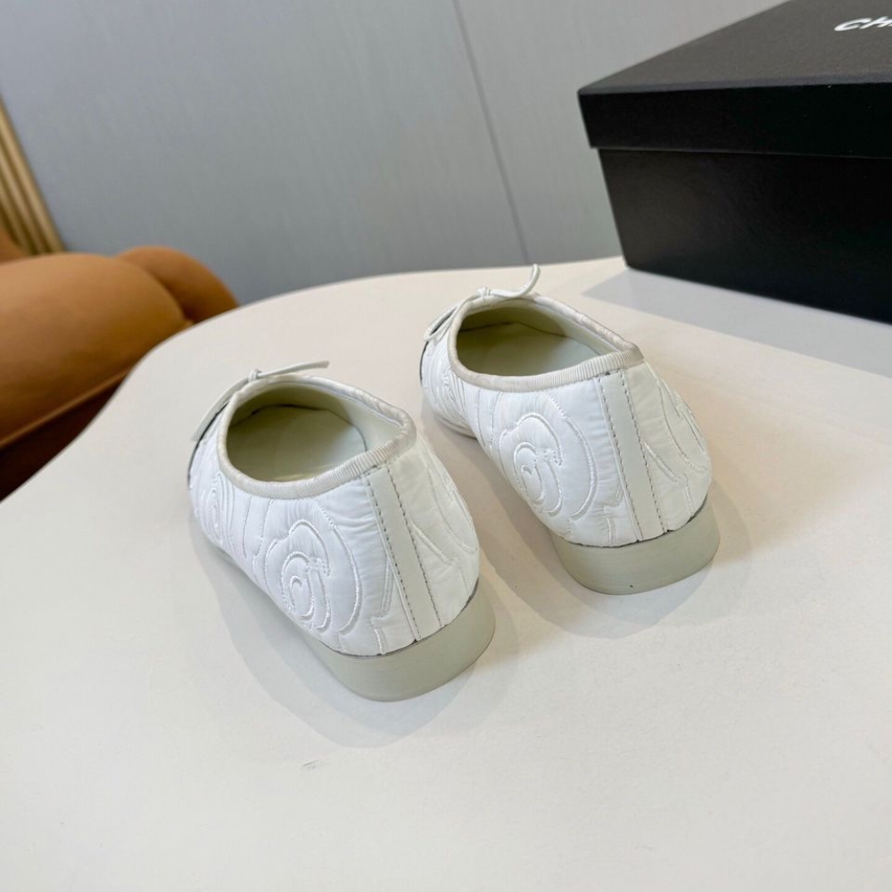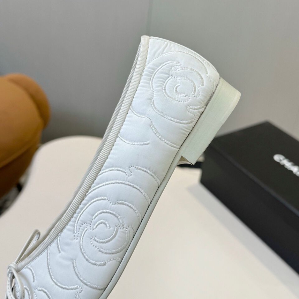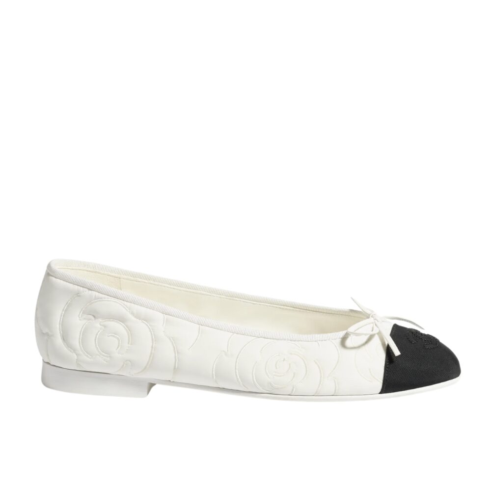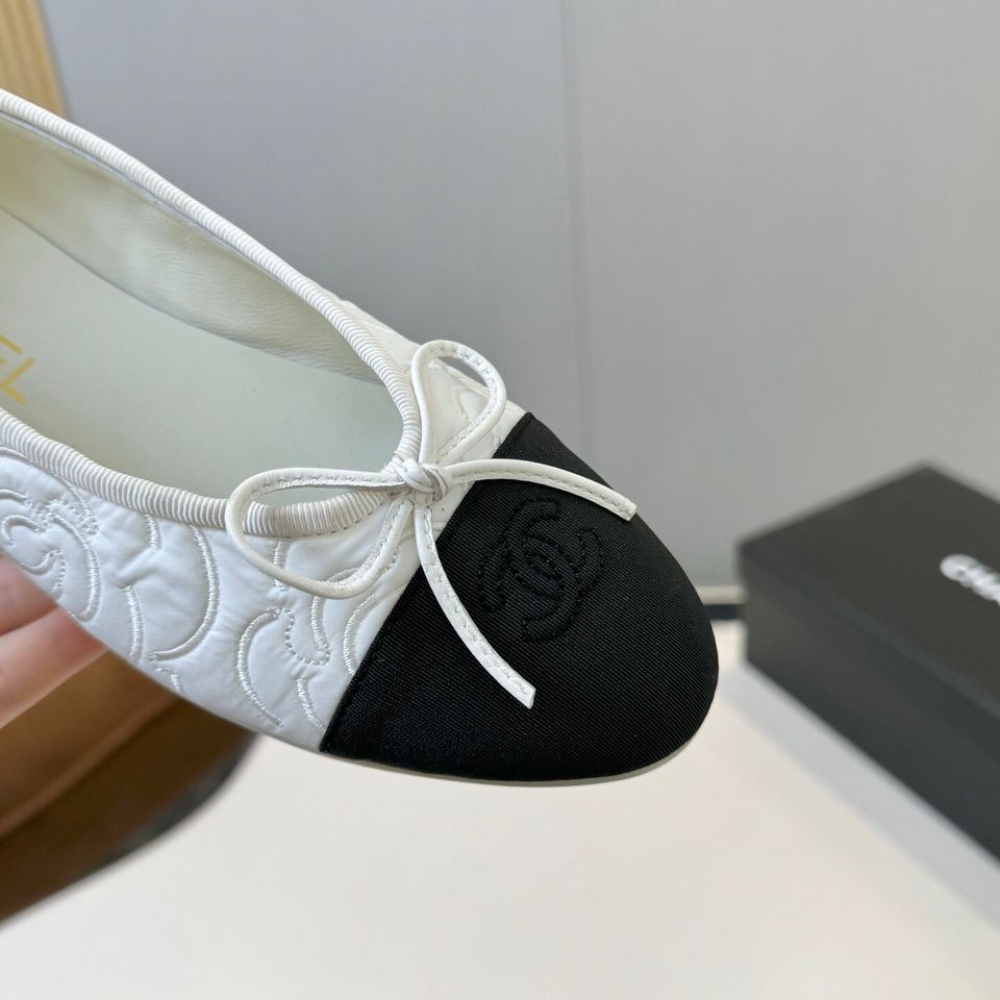 Chanel Ballet Flats Embroidered Fabric And Grosgrain White Black G02819 B21026 U1898