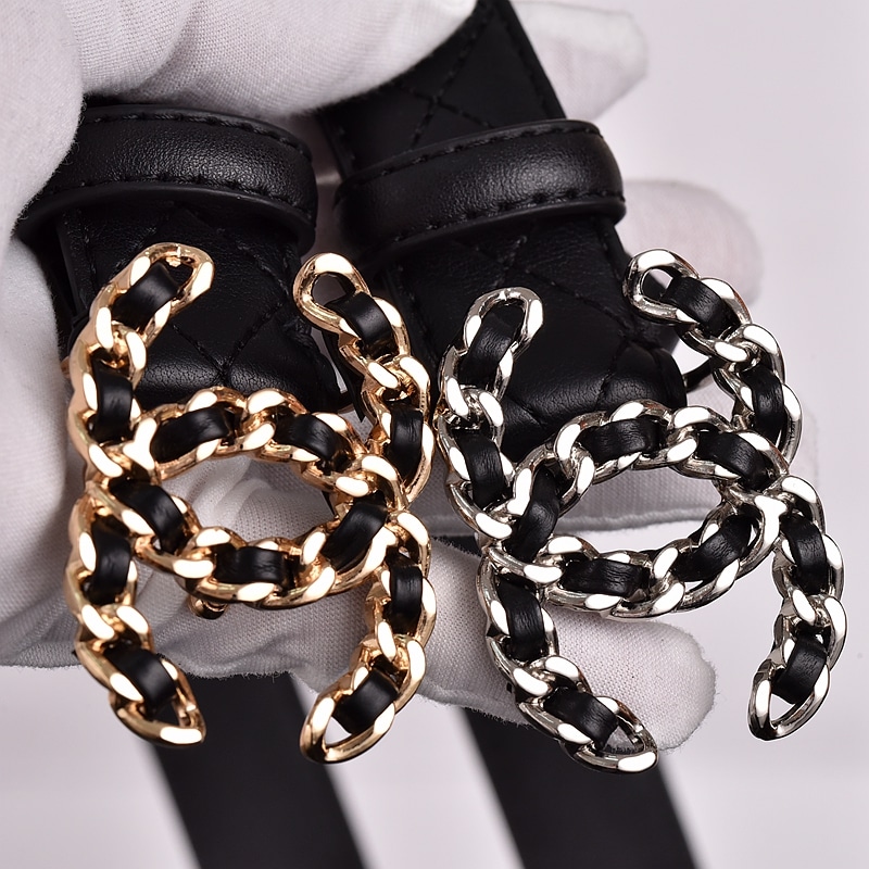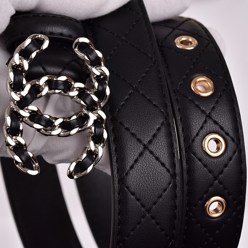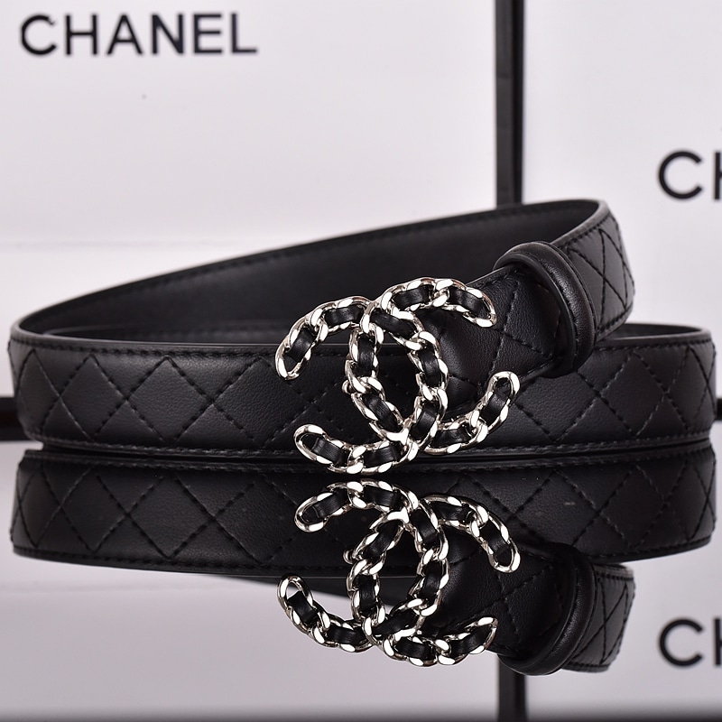 Chanel Cc Belt Silver Chain And Black Leather 28mm