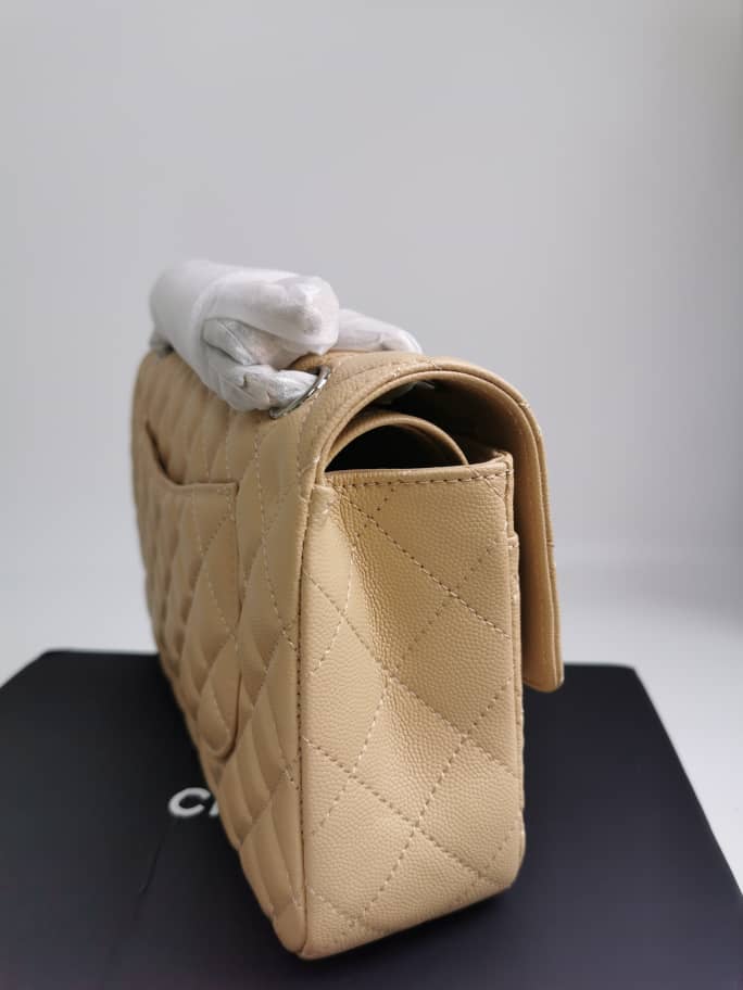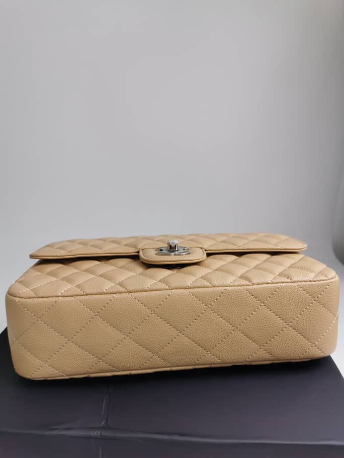 Chanel Cc Timeless Lined Flap Caviar Bag Dark Beige 26Cm