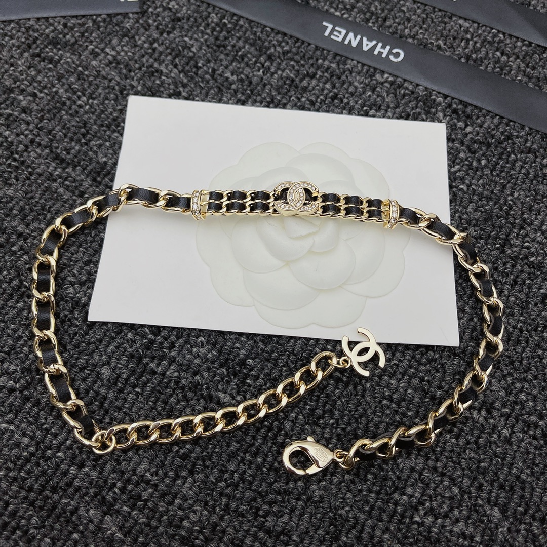 Chanel Glass Pearls Crystal Gold Black Belt 28Mm