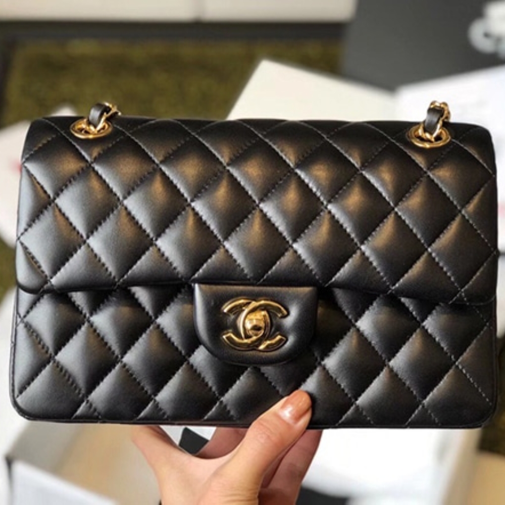 Chanel Classic 11.12 Handbag Gold Tone Metal Black 25Cm A01112 Y01295 94305