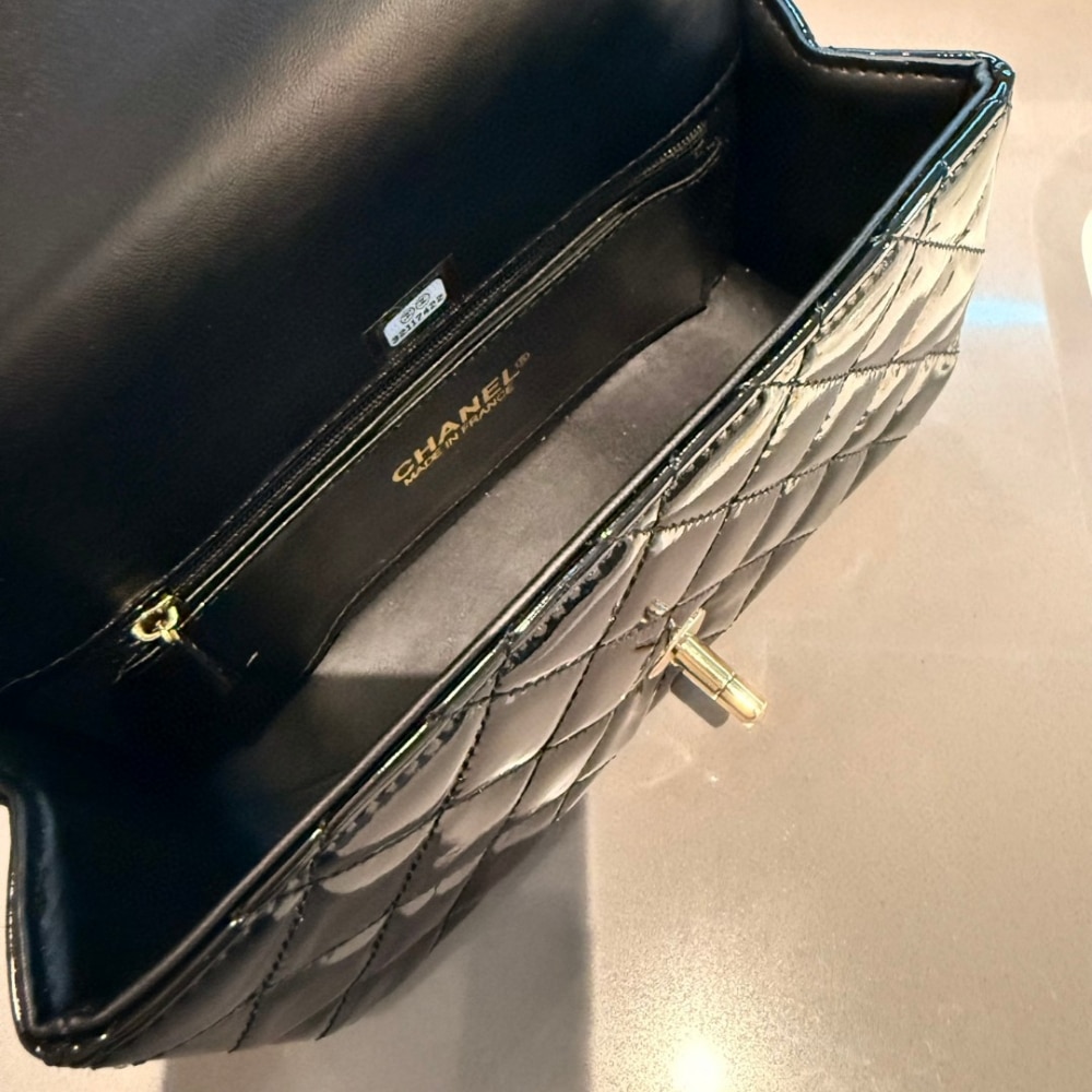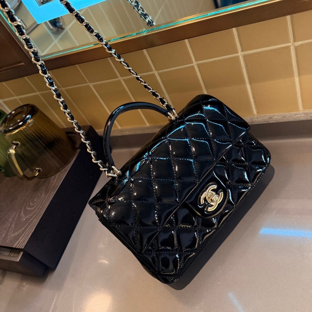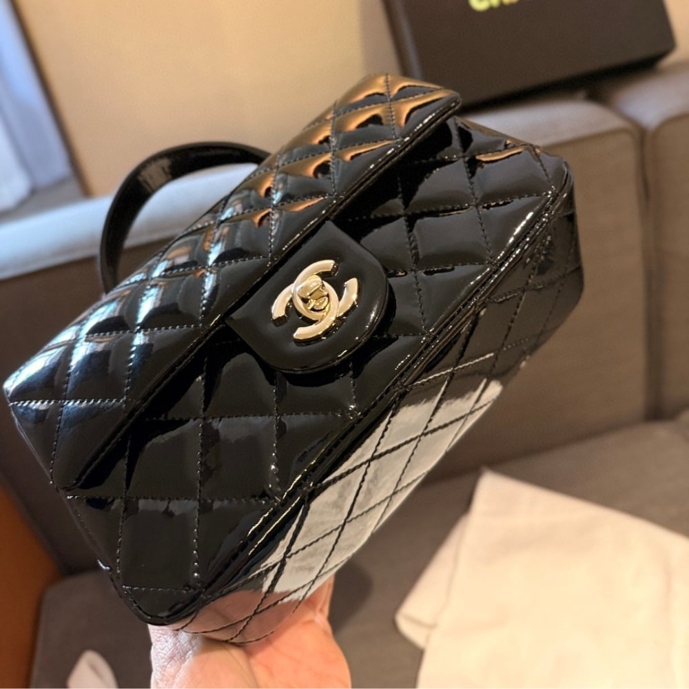 Chanel Classic Mini Bag In Shiny Leather With Handle Black 20Cm