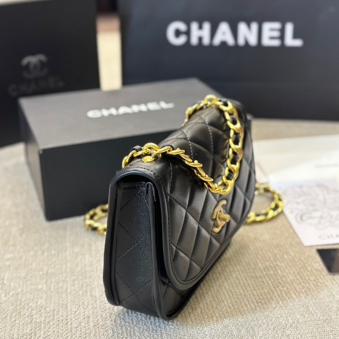 Chanel Crossbody Bag Leather And Gold Tone Metal Black 23Cm As4845 B16235 94305