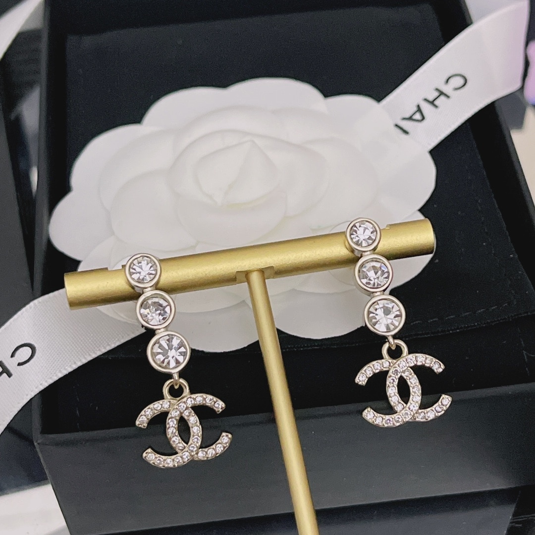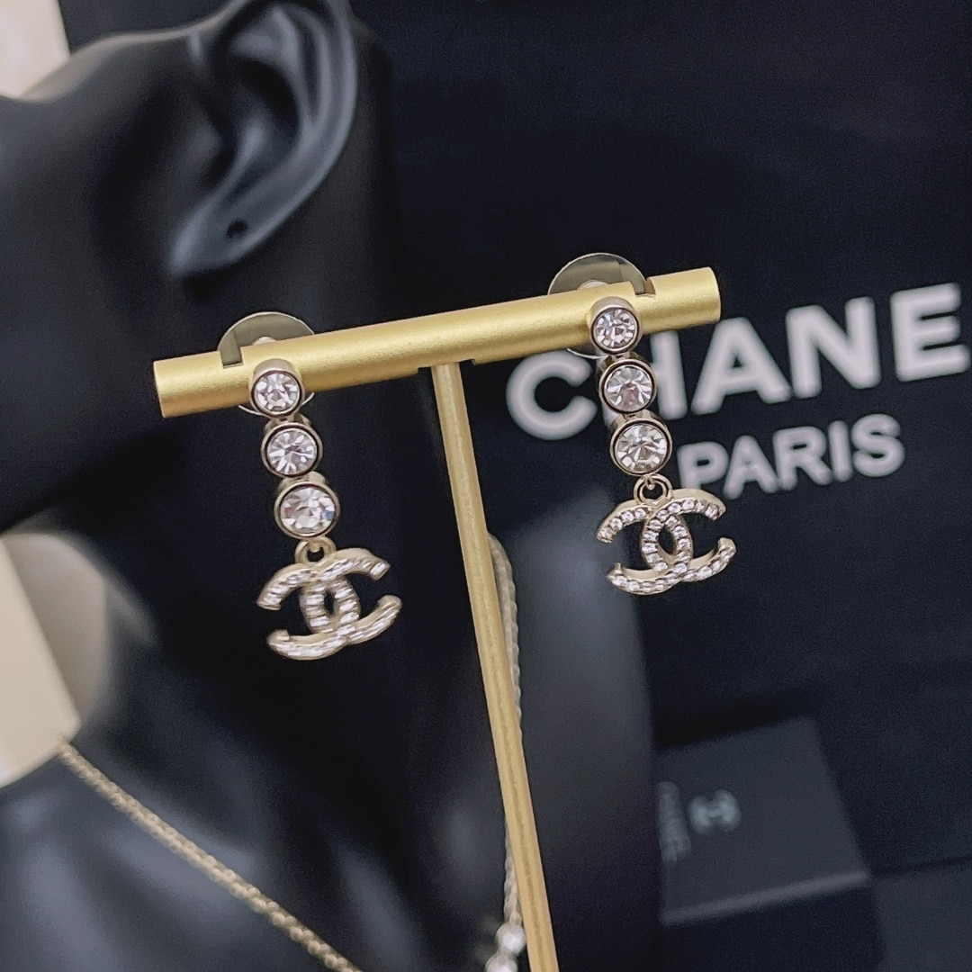 Chanel Crystal Cc Drop Earrings Gold