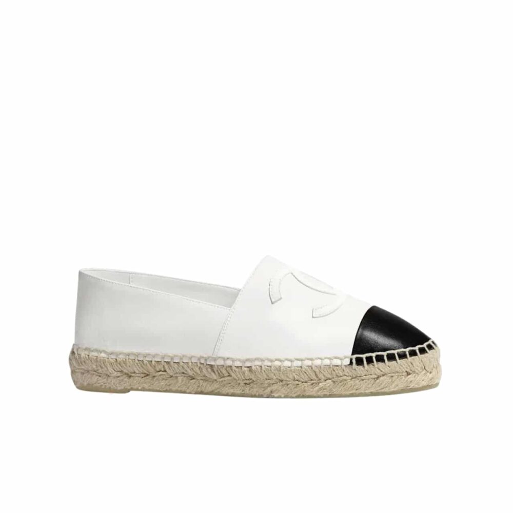 Chanel Embroidered Espadrille Leather Black Cap Toe Flats White CC