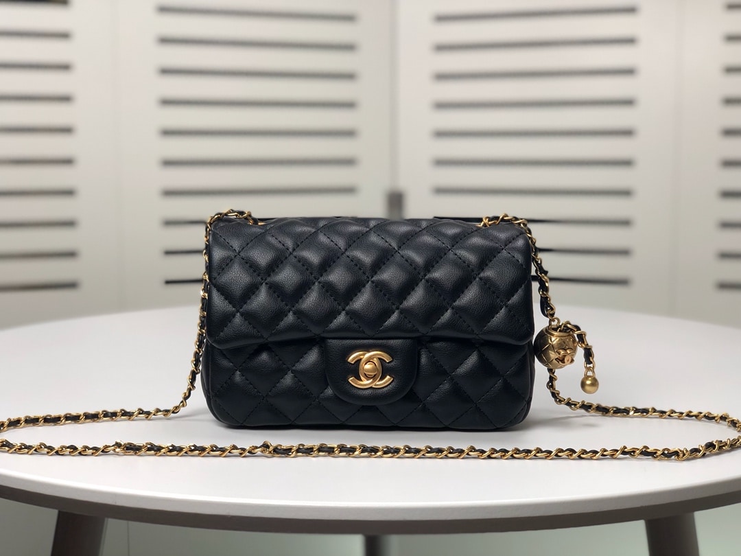 Chanel Flap Bag Mini Cc Rectangular Pearl Crush Gold Black 20Cm As1787 B18602 94305
