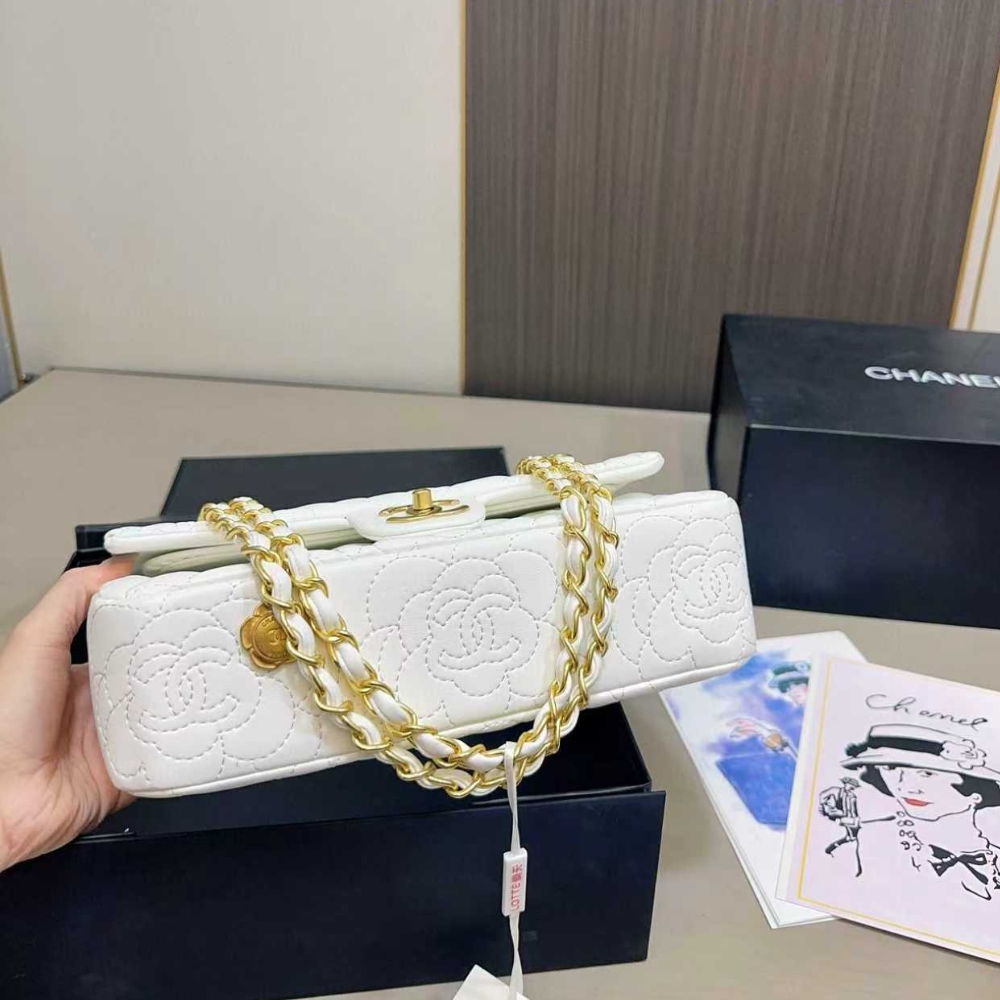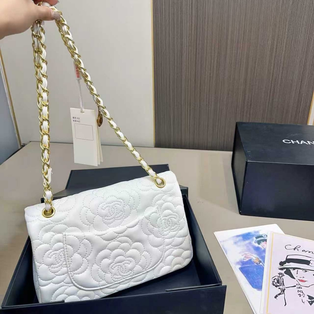 Chanel Flap Bag With Camellia Flower Chain White 26Cm