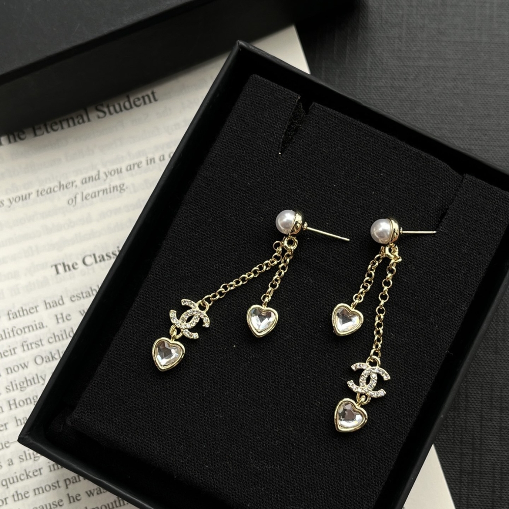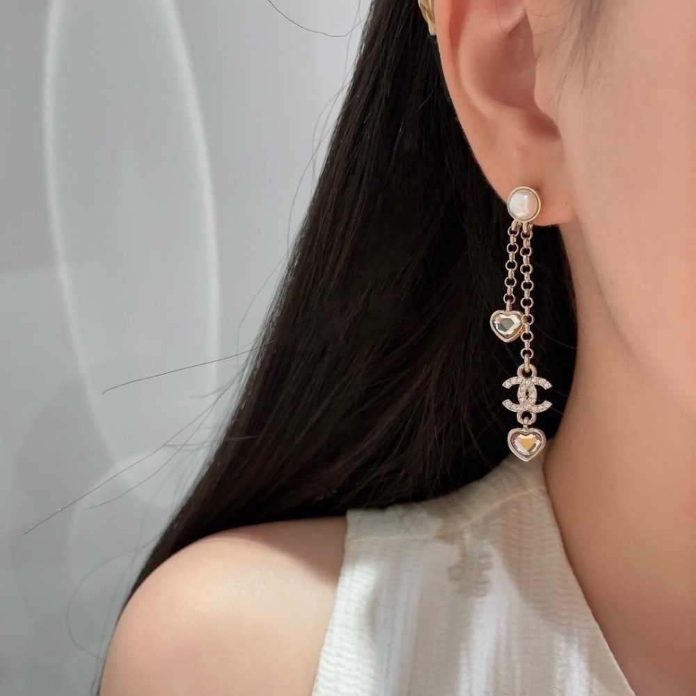 Chanel Heart Shaped Earrings Crystal In Gold Abg245 B21749 U3282