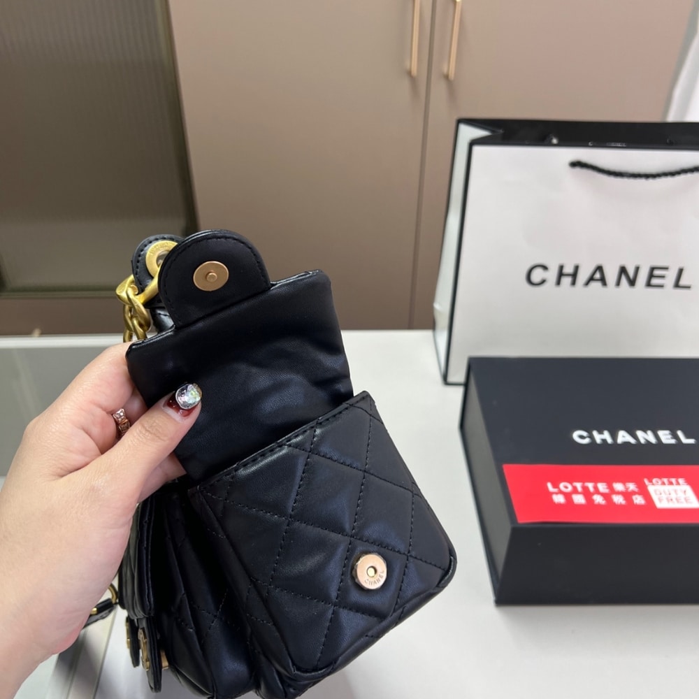 Chanel Maxi Hobo Bag Gold Tone Metal Black 25cm