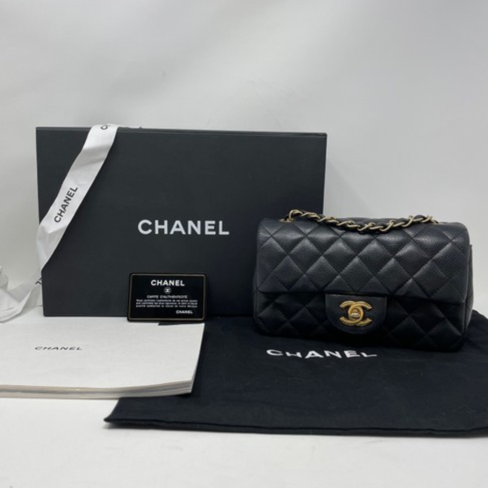 Chanel Mini Classic Handbag Gold Tone Metal Black 20Cm A69900 Y04059 94305