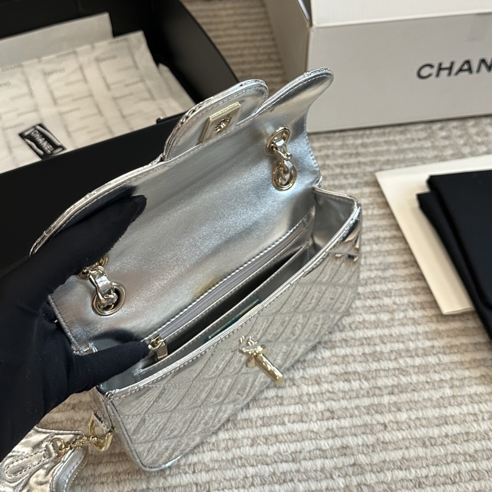 Chanel Mini Flap Bag Star Coin Purse Silver 24Cm As4648 B14873 Nt666