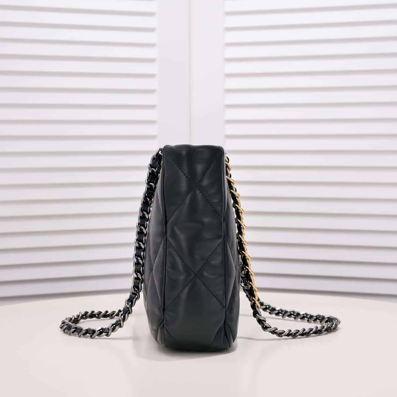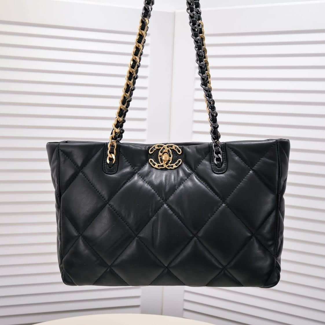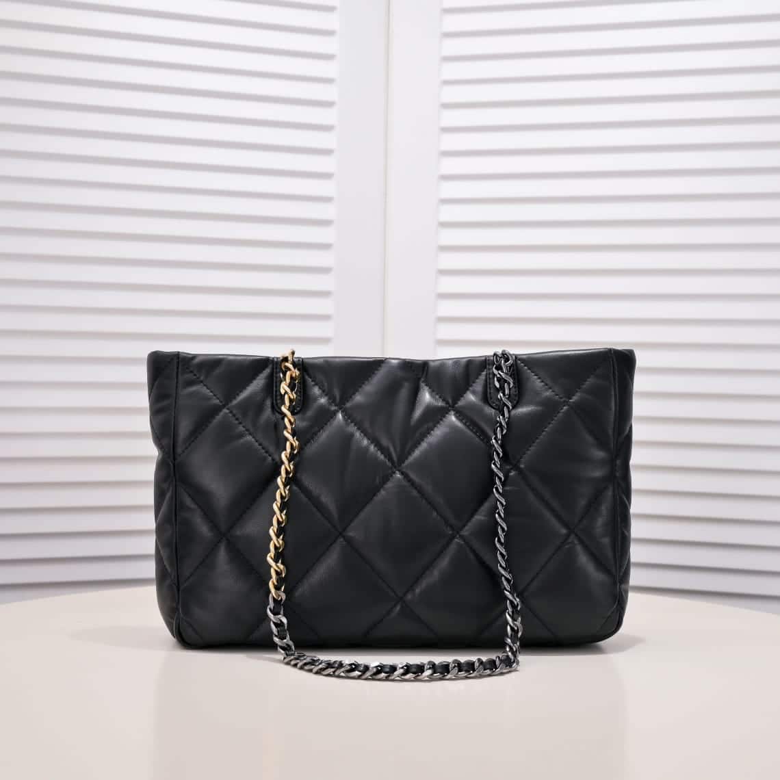 Chanel Quilted 19 East West Shopping Bag Black 35Cm