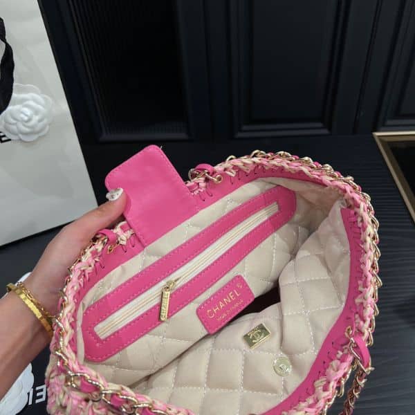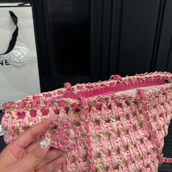Chanel Straw Shoulder Bags Pink 27Cm