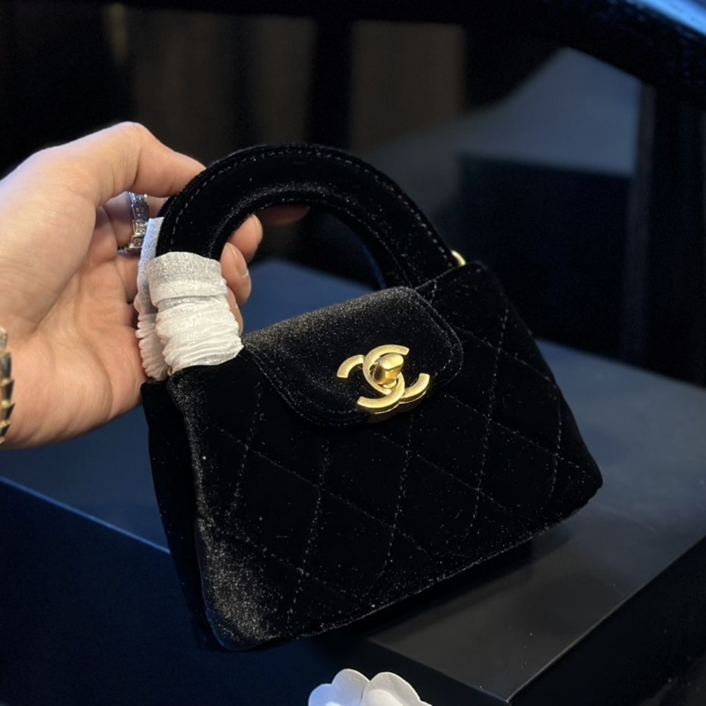 Chanel Velvet Nano Kelly Re Edition Black 13Cm